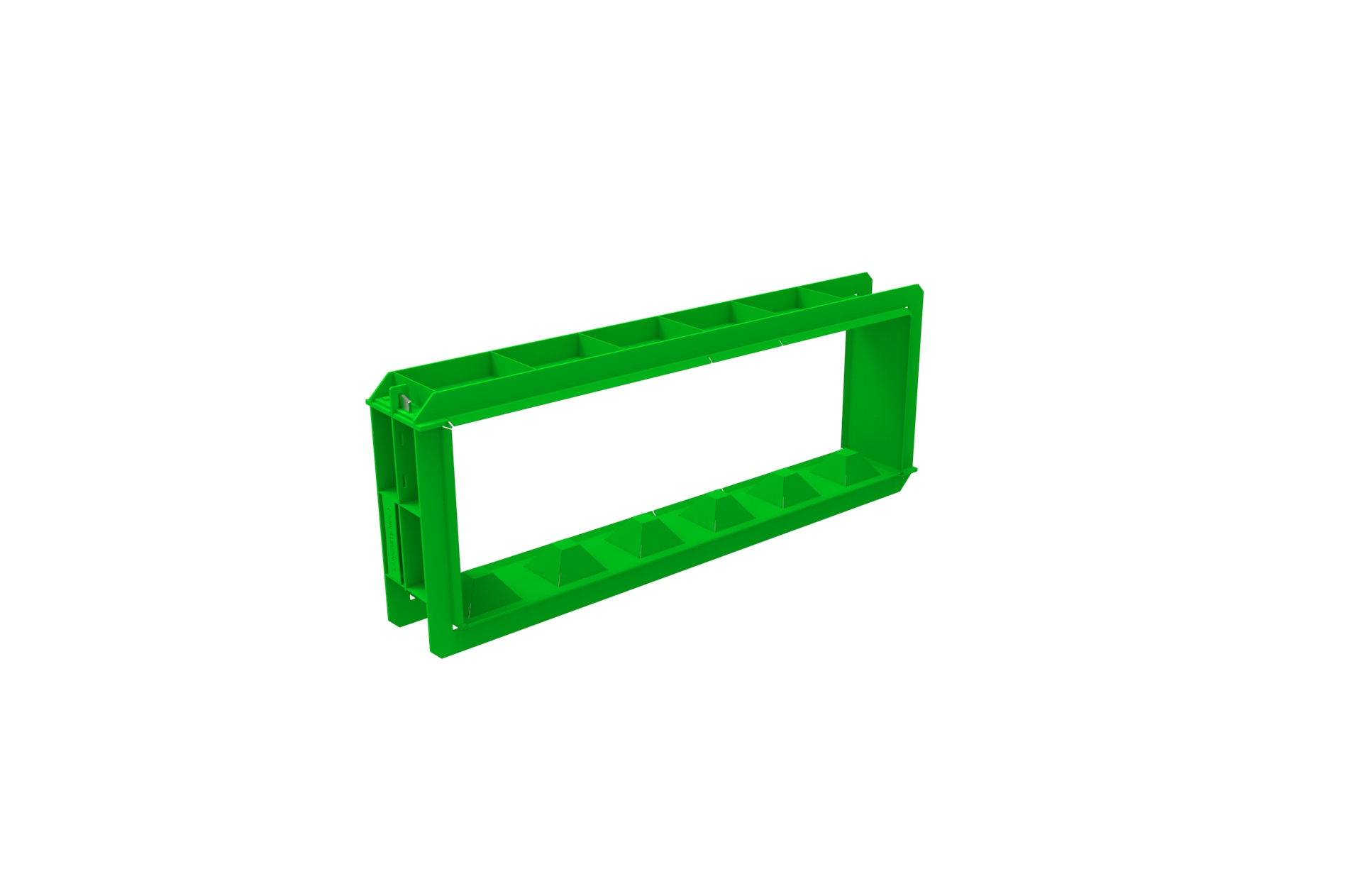 Form für flache Betonblocksteine F-180/30/60 P gefertigt aus Baustahl, entwickelt zum Gießen von Betonblöcken, geöffnet mit einem Schlüssel.