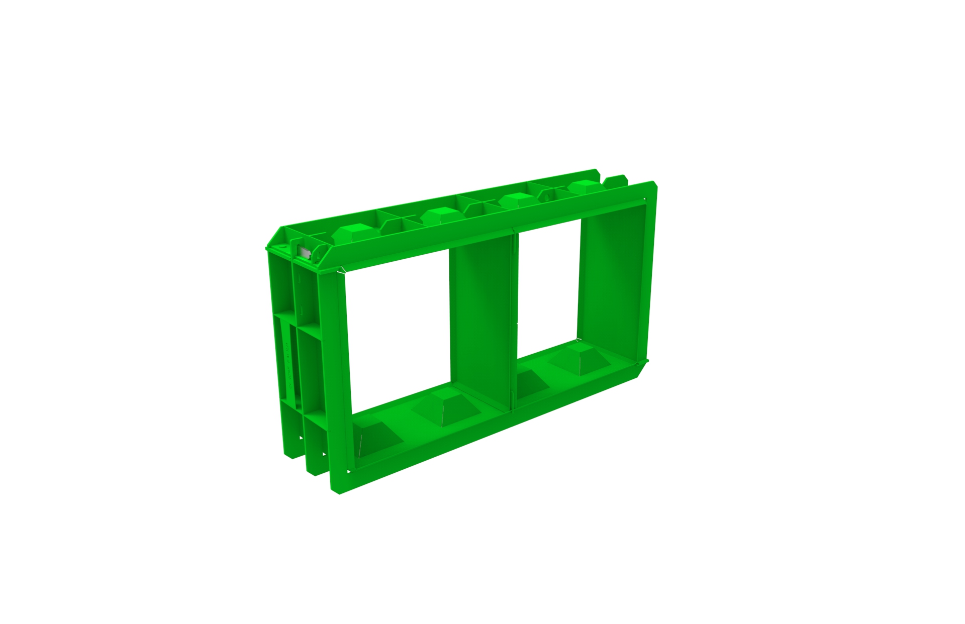 Form für Betonblocksteine F-160/40/80 gefertigt aus Baustahl, entwickelt zum Gießen von Betonblöcken, geöffnet mit einem Schlüssel.